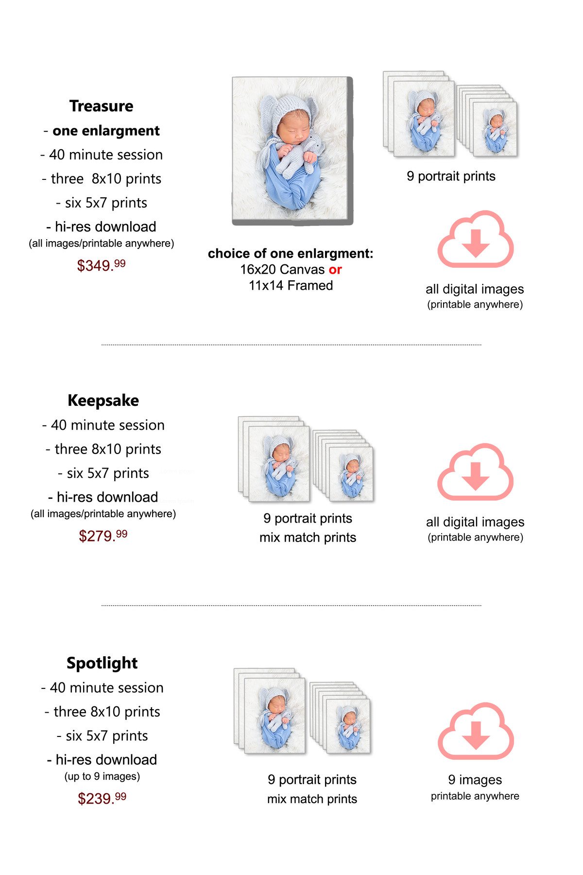 *A non-refundable deposit of $45 is required to secure your photo session. The deposit will be credited towards your package. Please be advised that there is a last-minute cancellation fee of $45. If you need to cancel or reschedule, please reach out to us at least 24 hrs before your appointment.